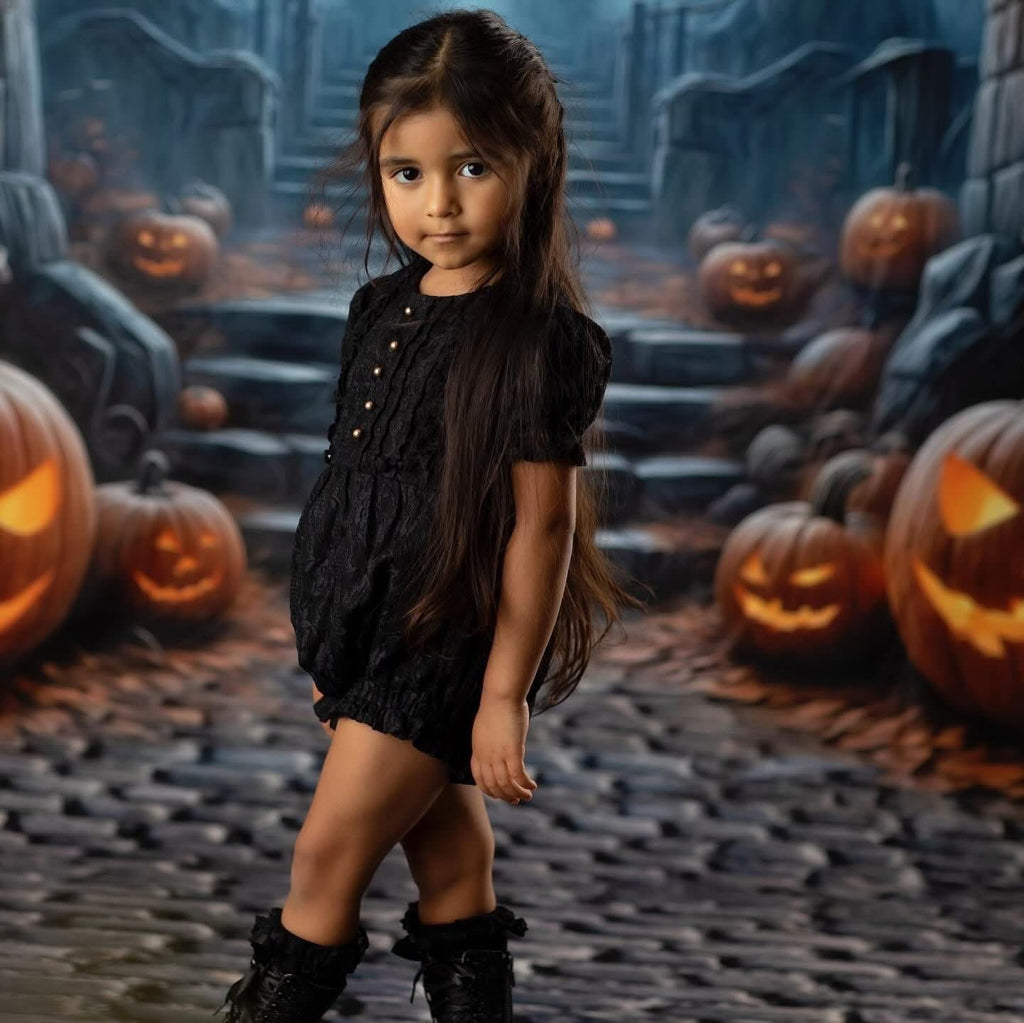 Sets 12/18 months through 5 year come with a bubble romper and sizing 6 year through 9/10 come with a simple dress design with bloomers (not shown, but the design is exactly the same as the bubble romper just with a black lace skirt vs romper for the bottom portion) but BOTH sets come with the removable wrap skirt with the full built in pettiskirt… this helps girls have simple looks or the super over the top look with the bow and all the fluff!