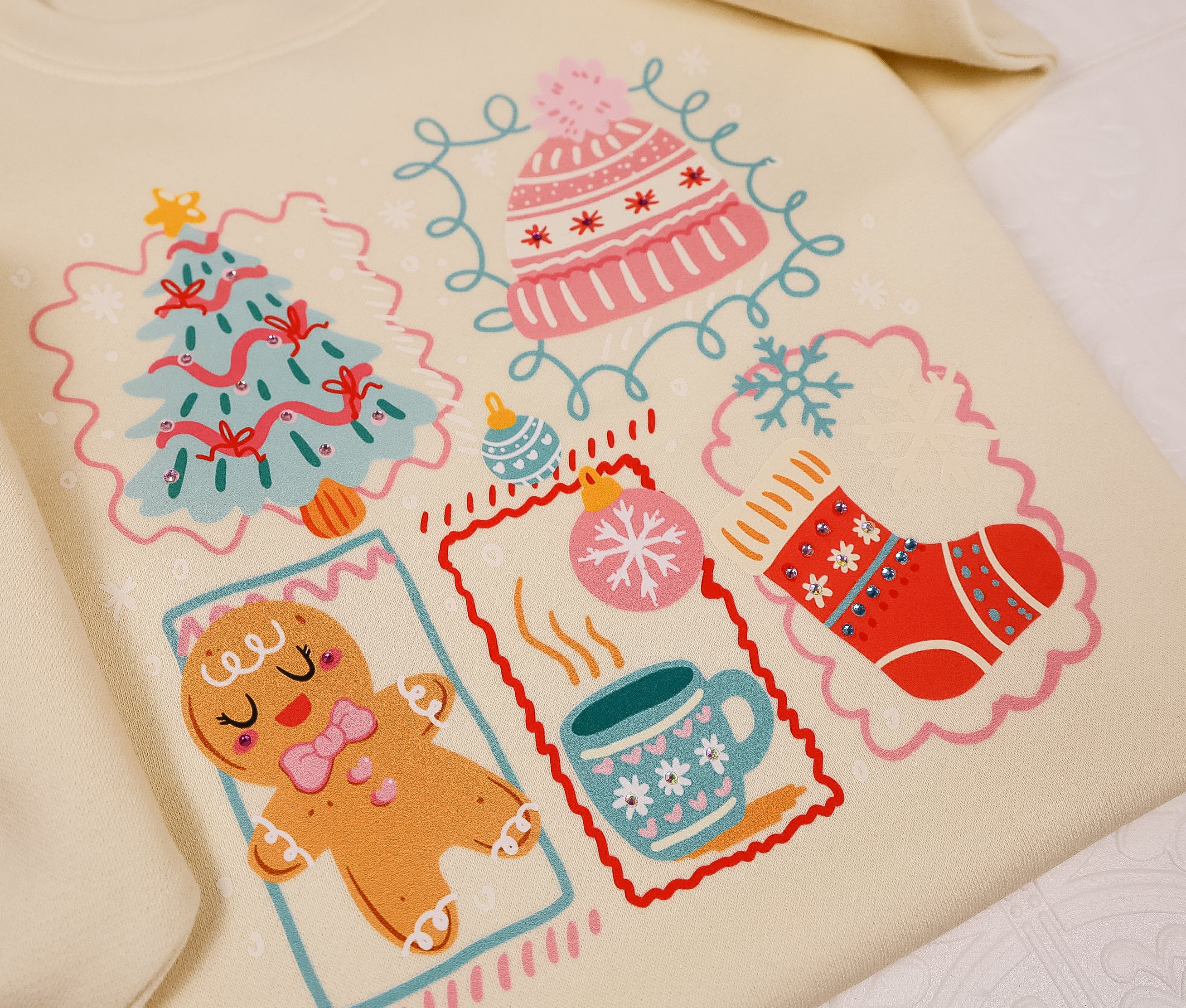 All sweatshirts are made to order and pressed on site, Rhinestones are heat pressed to ensure durability. Rhinestones are crystal rhinestones for optimal sparkle.